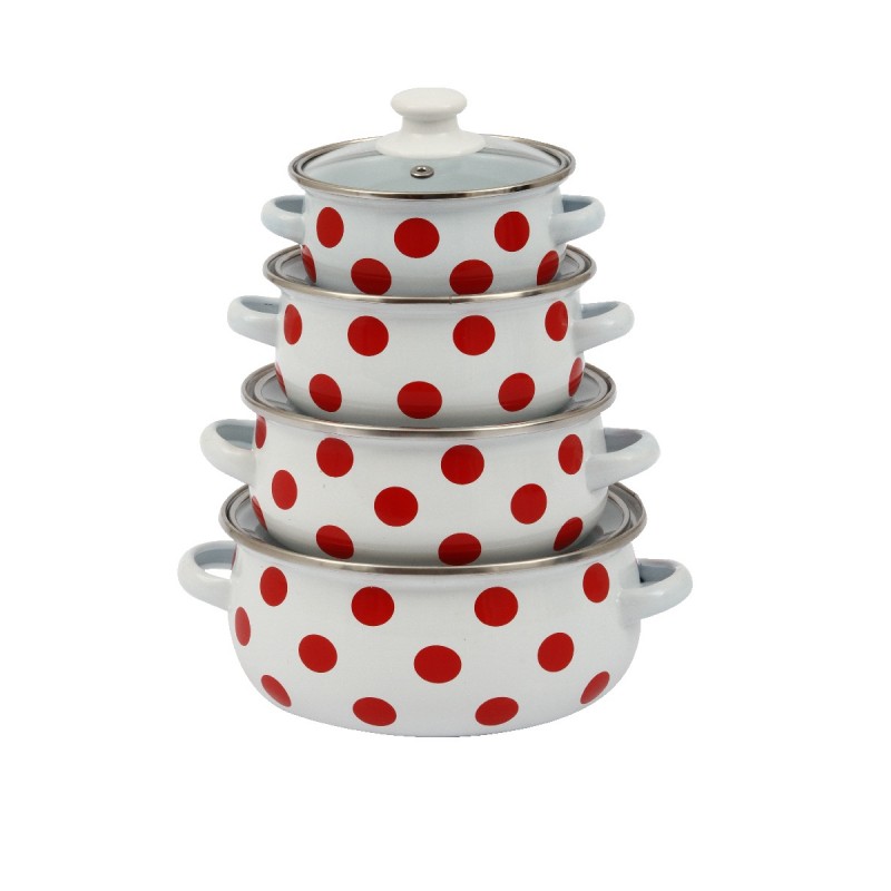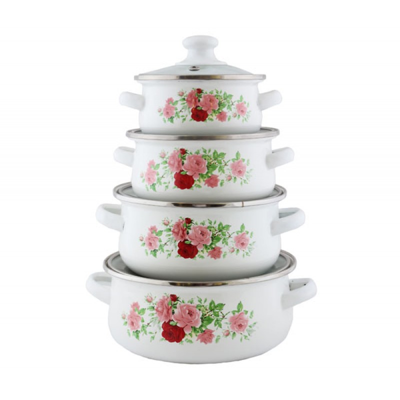 Emaye 4'lü Tencere (Cam Kapaklı)